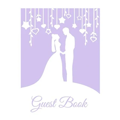 Guest Book: White & Lilac wedding Book (Paperback), Purple Mr and Mrs Bride Groom silhouette design A4 Book, 8.5"x11" Modern Guestbook for with hearts stars