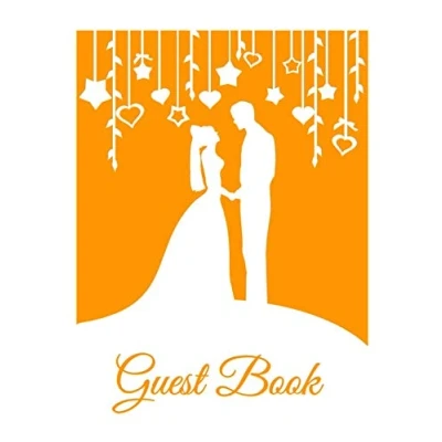 Guest Book: White & Orange wedding Book (Paperback), Romantic Mr and Mrs Bride Groom silhouette design A4 Book, 8.5"x11" Modern Guestbook for with hearts stars