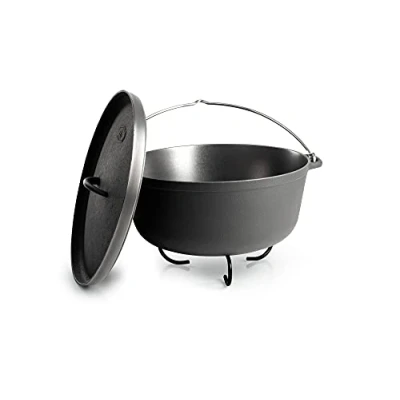 Dutch oven, lid, bail handle Hard Anodized Aluminum Made of durable and highly conductive cast aluminum, heats up quickly and evenly and won't rust, so you can go to places where cast iron can't The non-porous anodized surface of this Dutch oven means the food won't stick and the pot will be cleaned beautifully once you're done Dutch ovens cook under radiant heat, so they work best with coal or coals underneath and piled up on the lid