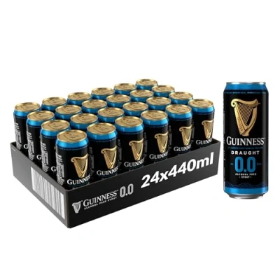 Guinness Draught 0.0 Alcohol Free Stout 0% vol 24 x 440ml Notes of Sweet Malt & Hop Bitterness Dark Ruby Red Beer Creamy Head Hints Chocolate Coffee