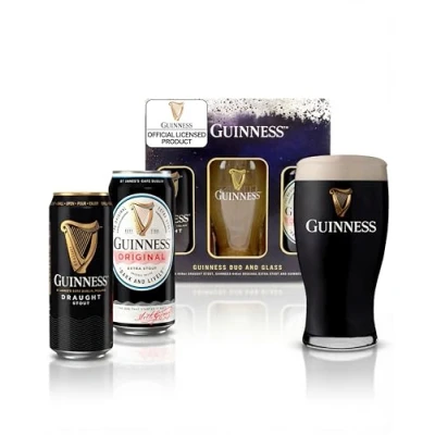 Beer Gift Set for Guinness Enthusiasts: Gift Hampers for men; 1x Guinness Original 440ml 4.2% ABV, 1x Guinness Draught 440ml 4.1% ABV and 1x Guinness branded Pint Glass. Perfect Guinness gifts for men! Guinness Gift Set Brewed To Perfection: Guinness Original is based on a beer first brewed in 1821; crisp hint of roasted barley and fresh breeze of hops gives a refreshing bite, the ideal alcohol gift sets for men and a great present for those who love a craft beer gift set. Ideal on St Patrick's Day, as dad birthday gifts, or a boyfriend Valentines gift for him Alcoholic Hampers & Gourmet Gifts: Enjoy the worlds most famous Irish stout with an Official Guinness Pint beer glass gift for man. The ideal birthday presents for men, beer and stout lovers! Branded beer glasses wash before first use, suitable for use in a dishwasher There's Nothing On This Planet Like A Pint Of The Black Stuff: Guinness Draught was brewed in 1959 for the 200-year anniversary since Arthur Guinness signed a lease on St. James's Gate Brewery. Good man Arthur, he knew a good thing when he saw it! Beer and Lager Gift Set: Ideal on St Patrick's Day, as dad birthday gifts, or a boyfriend Valentines gift for him also ideal for new home, thank you, father's day gifts for dad, stocking fillers, or if you're just a Guinness fan and want to treat yourself