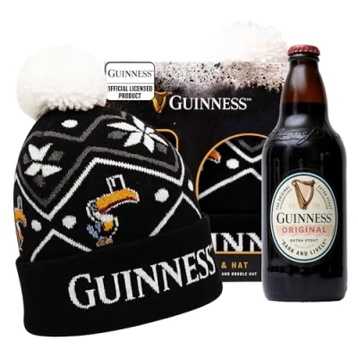 Beer Gift set for Guinness Enthusiasts : Dive into the rich heritage of Guinness with our official alcohol gift set, featuring a 330ml bottle of the beloved Guinness Original 4.2% ABV Stout and a stylish official Guinness-branded bobble hat, a great alcohol gift set for Guinness lovers on Birthdays or Valentines Guinness Gift Set Brewed to Perfection: Searching for Guinness gifts for men or beer gifts for men who have everything? This hampers & gourmet gifts idea is the ideal choice, combining quality and tradition in one package - Sweet smelling coffee and malty aromas; Smooth, creamy and a perfect balance of bitter and sweet with malt and roast characters Celebrate the Irish Legacy: Perfect for lovers of Irish gifts, this beer and lager gift set captures the essence of Ireland, making it a standout choice amongst beer hampers for men and birthday gifts for men, a Valentines gift for him, or dad birthday gifts Versatile and Thoughtful: Whether looking for mens Valentines gifts, birthday presents for men, gift hampers for men, or just a food gift for man or woman, this Guinness set is suitable for all occasions, offering both warmth and a taste of iconic stout Warm Up in Style: Beyond just a gift for men, this pack comes with a premium Guinness-branded bobble hat. Ensuring you stay cosy in the cold while enjoying your stout, this is a perfect pick amongst alcohol gift sets for men. Add it to your DIY craft beer gift set or Christmas beer hamper for the extra special touch