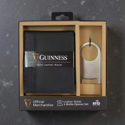 Step out with a wallet that’s as sharp as your taste in beer. This officially licensed Guinness leather wallet pairs classic style with a clever twist—featuring a built-in bottle opener ready to spring into action when the mood calls for a cold one. It’s a nod to the iconic brand, ideal for fans who like their accessories with a splash of character and plenty of practical charm. Crafted from smooth leather, this wallet feels sturdy and polished in hand, offering neat compartments that keep your cards and cash organised without bulk. Compact and designed for everyday carry, it slips easily into pockets or bags, delivering a fuss-free experience whether you’re hitting the pub or heading out on the town. The smart design means you’ll have your essentials and your opener all in one sleek package, cutting down the need to rummage around when it’s time to crack open a drink. More than just a wallet, it’s a cool conversation starter and a stylish companion for those who appreciate Guinness and practicality alike. This distinctive accessory suits anyone wanting to showcase their fandom with a clever edge. So, whether for yourself or a mate, this wallet blends dependable function with unmistakable Guinness flair that’s bound to turn heads wherever you go.
