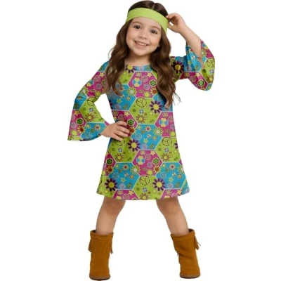 Hippie Girl Costume - Flower Daughter - Freak Includes complete dress and headband 5-6 Years (108/116 cm) Polyester Material, Manufacturer: Guirca