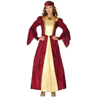 BECOME A MEDIEVAL NOBLEWOMAN! - Includes dress, headband, and veil. Necklace and shoes not included. Get ready to dazzle at your next medieval party! Available in sizes 10 - 12 (M) and in burgundy and gold colours. DIMENSIONS - Size 10-12 (M). Perfect for a medieval look, offering a comfortable and stylish fit. PERFECT FOR MEDIEVAL THEMED PARTIES - This product combines elegance and style in burgundy and gold. Make your celebration unforgettable! BECOME A MEDIEVAL QUEEN! - Medieval lady fancy dress for women, includes dress, headband and veil. Perfect for themed parties and unforgettable events. Available in sizes 10 - 12 (M) and in burgundy and gold colours. FANCY DRESS AND ACCESSORIES FOR ALL OCCASIONS - At Fiestas Guirca, we offer fancy dress, accessories, and decorations for Halloween, Carnival, Hen and Stag Parties, and more. Visit our Amazon store to see more., Manufacturer: Guirca