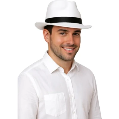 Guirca Fiestas GUI13507 White Gangster Hat with Black Bow