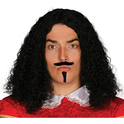 Vintage Wig with Moustache and Knob Perfect for Musketeer costume Packaged in a box, Manufacturer: Guirca