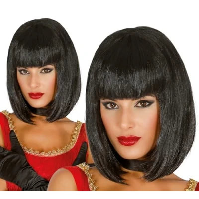 Medium Wig Hair Black Straight Fringe Packaging in Box, Manufacturer: Guirca