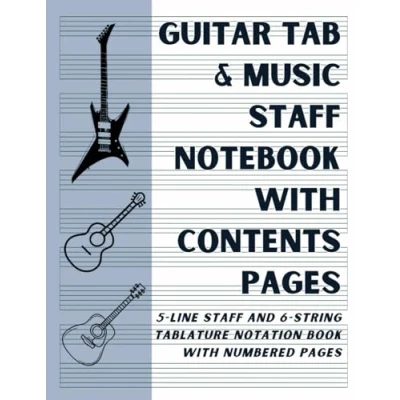 Guitar Tab and Music Staff Notebook With Contents Pages: 5 Line 6 String Tablature Notation Book Numbered Pages
