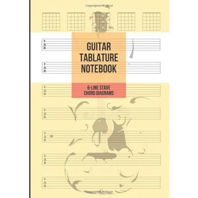 Guitar Tablature Notebook: Blank Tab Paper, 7 6 Line Staves and 5 Chord Diagrams per Page, 100 Pages A4