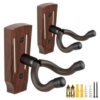 Guitar Wall Mount 2 Pack, Hanger, UShaped Hanger Holder Hook Accessories for Acoustic, Electric Guitar, Bass, Ukulele with 5 Picks (Walnut Color)