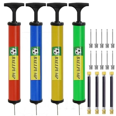 ⚽ FEATURES : Our Air Pump provide easy Inflation, Don't use electricity, you can inflate your sports balls to tip-top shape for more playing enjoy any courts or fields.7.5" x 1.5" volumes air is inflated to ball body at one stoke, which is much more than 8 inches. ⚽ MULTIFUNCTIONAL ACCESSORY: Comes with 4 metal pin needles/1 removable and flexible rubber hose/2 tapered nozzle . Highly recommend you to use the flexible rubber hose and a pin needles to pump up any Sport balls. ⚽ PROTECTIVE TYPE: Reduce the potential strain and damage on the ball valve using the provided soft extension hose. You can inflate balls in different angles and thus prevent your ball needle broken into the ball due to the improper operation. ⚽ PORTABLE: Small, convenient to carry, eco-friendly, can fit in any backpack and ball bag with side pockets. you can inflate your sports balls to tip-top shape for more playing, enjoy any courts or fields. ⚽ EASY TO USE: Kids can also be easy to use the plastic tapered nozzle for inflatable toys and balloon, best gift for boys and girls. Also fit for swim ring beach ball inflatable pillow inflatable hand Arm ring.