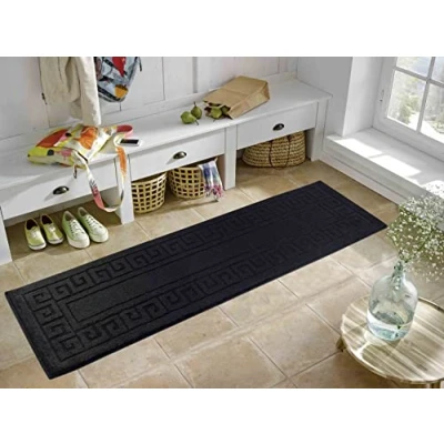 GULLAMBO Door Mat Non Slip For Tiles Lino lamination Wood Flooring Washable Front Inside, Super Absorbent Dirt Trapper Kitchen Mats Rugs (Black Greek, 60cm x 110cm)
