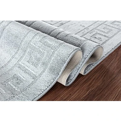 GULLAMBO Door Mat Non Slip For Tiles Lino lamination Wood Flooring Washable Front Inside, Super Absorbent Dirt Trapper Kitchen Mats Rugs (Dark Grey Greek,80cm x 150cm)