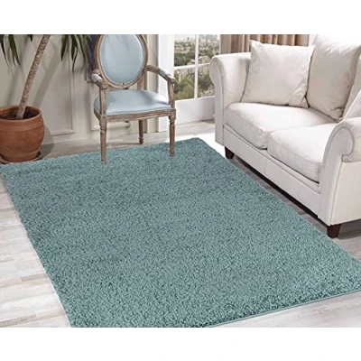 GULLAMBO Rugs Living Room Easy to Clean Fluffy Area Lounge Bedroom, Hallway Office & Kitchen Carpet Runner Large Small OXFORD (45mm) (160x230cm, 912 Duck Egg)