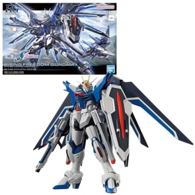 OFFICIAL BANDAI MODEL KIT | High Grade 1/144 scale model kit of the Rising Freedom Gundam from Mobile Suit Gundam SEED Freedom, produced by Bandai Spirits. A perfect build for collectors, hobbyists and fans of the SEED universe. DETAILED DESIGN AND ARTICULATION | Features the advanced SEED Action System, enabling dynamic, iconic action poses from the series, plus deployable wings, rail cannons and Agni cannon for impressive display options. NO GLUE OR PAINT REQUIRED | Colour‑moulded parts ensure clean snap‑fit assembly for builders of all skill levels. Detailed colour separation provides an accurate finish straight out of the box. TRANSFORMATION AND EFFECT PARTS | Recreate MA Mode through simple part rearrangement. Includes accessories such as clear beam effects, extendable weapons and a shield with attachable effects for dramatic posing. INCLUDES WEAPONS AND ACCESSORIES | Comes with a beam rifle, two beam sabers (which can connect), shield, beam shield using polarised moulding, effect parts, hand parts and stickers for enhanced detail., Manufacturer: Bandai Hobby