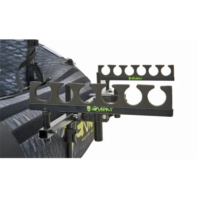 An extremely handy accessory for your Gunky belly boat. This roost fits the Gunki accessory bar but can also mounted to the screw of the accessory bar legs. Holds 6 rods.