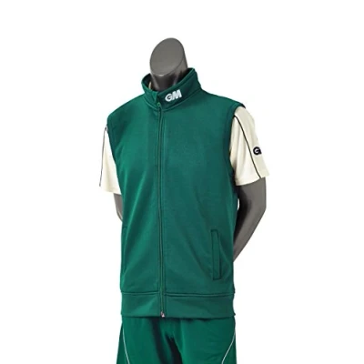 Gunn & Moore GM Mens Cricket Performance Training Gilet 100 Percent Polyester Jersey Anti Pill Fleece Elasticated Waist Logo to Collar Dark Green Large Juniors 30 32" Chest