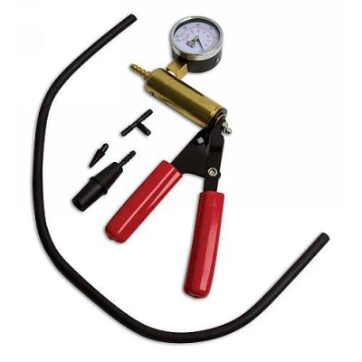 Checks vacuum operated systems on car and light commercials. Gauge 0-76Cm/hg (0-30 In/hg). Barbed brass hose fitting, release valve, `T Fitting 600mm, tapered hose adaptor, Universal fitting adaptor, cushioned handle grip, robust steel frame, brass cylinder for durability. This set provides many tests including: Automatic transmission, vacuum reservoirs, air conditioning and heating, heater cones, brake systems (including ABS and conventional), Engine management systems, emission control systems, engine tuning, fuel systems, ignition systems, engine maintenance including: Cylinder head, valve stem oil seals, piston ring retainer on diesel engines, waste gases on turbo chargersGauge: 0.76Cm/hg (0.30In/hg)Checks vacuum operated systems on cars and light commercialsProvides a range of tests from automatic transition to waste gases on turbo chargersSoft grip handlesGreat time saver, multipurpose