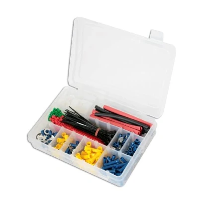 A must have kit for anyone working on classic or modern vehicles Set includes over 300 items such as insulated terminals, heat shrink tubing, spade connectors, ring connectors, cable ties, fixing rings etc Essentials for ensuring a complete and tidy electrical connection Includes insulated terminals, heat shrink tubing, cable ties etc Supplied in a plastic compartment box for easy storage and selection Automotive Tool