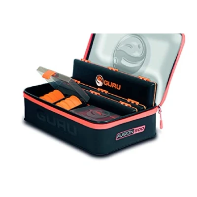 Guru Fusion - Available in different variations! - Material: 0.8mm EVA - Very handy storage bag - 100% waterproof - Tinted lid - Wide and sturdy zippers - Easy to keep clean The Guru Fusion consists of an extensive range of storage bags and bait bowls from Guru. These bags are all made of high quality 0,8mm EVA material that is 100% waterproof! In addition, these bags feature a handy tinted lid with a sturdy zipper. These bags are ideal for protecting valuables or bait from wind and weather. These bags are also very easy to clean! Guru Fusion 110: 19×12×6cm Guru Fusion 150: 20×12×6,5cm Guru Fusion 210: 18×11×10cm Guru Fusion 400: 21×18×10cm Guru Fusion 420: 36×11×10cm Guru Fusion 800: 36×22×10cm