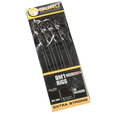 Guru QM1 Speedstop Ready Rigs - Coarse fish leaders! - Number of pieces per pack: 8 - Length: 10cm - Hook size: 10,12 - Line thickness: 0.25mm, 0.22mm - Max pull: 12lb - EVA spool - QM1 hook - Fast hooking - Equipped with Speedstop - Easy to use! With these leaders we have chosen to attach the well-known Speedstops to the hair! This makes it a piece of cake to quickly and safely attach the bait with these ready-made leaders that are equipped with a Speedstop!