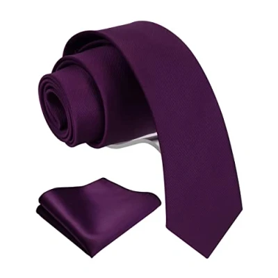 Gusleson 2.4" Men's Skinny Solid Ties Eggplant Purple Slim Classic Necktie and Pocket Square Set (UK0754 06)