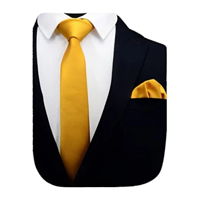 Gusleson 2.4" Skinny Tie For Men Solid Gold Yellow Slim Necktie and Pocket Square Set (UK0754 19)