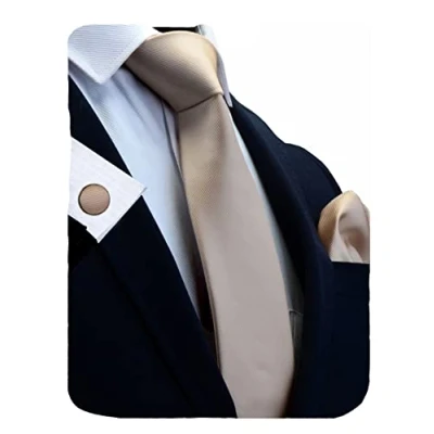 Gusleson Brand Men's Solid Silk Champagne Ties Adult Neckties and Pocket Square Cufflinks Sets (UK0789 10)