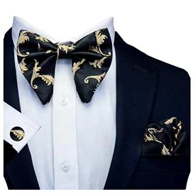 Condition: Fashion and High Quality Bowtie Size:4.7"x4.13"(12x10.5cm), Handkerchief size:9.8"x9.8"(25cmx25cm).( Due to manual measurement, there may be 1-2 cm error of the physical. ) Including: 1 bow tie + 1 Pocket Square + 2 Cufflinks + 1 Gift Box. The bow tie is comfortable to wear and to touch, allow men to show their style and demonstrate self-personality. Pre-tied Bowtie,One size fits all adults, Adjustable Neck Strap,Hook & Tie Fastening, Easily adjustable REFUND: You can apply for a refund if you are not satisfied.