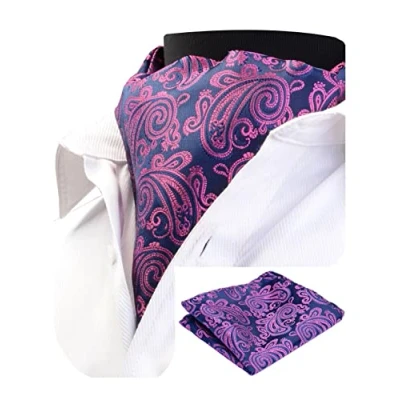 Gusleson Men's Ascot Paisley Cravat Tie Floral Jacquard Woven Wedding Necktie and Pocket Square Set (UK0603 12)