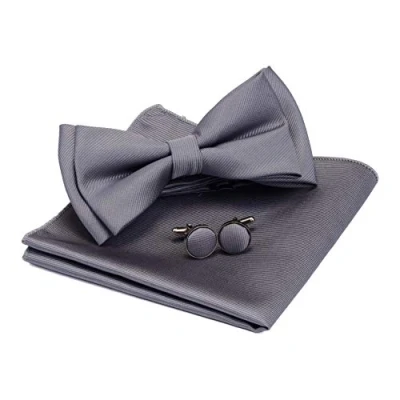 Gusleson Men's Bow Ties Solid Gray Tie Silk Pre tied Bowtie and Pocket Square Cufflink Sets (UK0577 05)
