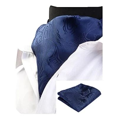 Gusleson Men's Navy Blue Cravat Self Tie Paisley Necktie and Handkerchief Set Floral Ascot (UK0603 02)
