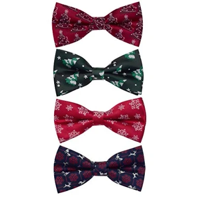 Package include:4 Pieces different pattern christmas bowties Adjustable pre-tied bowtie size approx. 3.94 inches long(10cm long);1.97 inches width (5cm width), suit for the most of child. Material:microfiber silk BEST ACCESSORY AND GIFT: the tie is comfortable to wear and touch, which is an excellent accessory or gift. REFUND: You can apply for a refund if you are not satisfied.