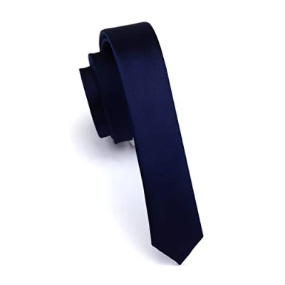 Gusleson Navy Blue Skinny Tie Formal Ties For Men Solid Slim Neckties Boys Gifts (UK0803 03)