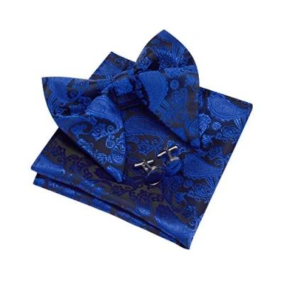 Gusleson Paisley Adjustable Royal Blue Bow Tie and Pocket Square Cufflink Set Pre tied Mens Bowtie (UK0613 11)