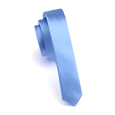 Gusleson Silk Skinny Ties For Men Light Blue Slim Tie Solid Formal Neckties (UK0803 09)