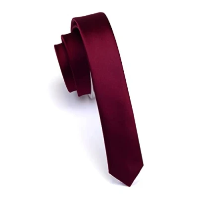 Gusleson Wedding Wine Burgundy Tie Solid Skinny Ties For Men Slim Silk Necktie (UK0803 06)