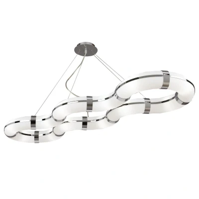 Guss Rectangular Pendant E27 12 Light Curved Bar , Polished Chrome/White Acrylic, CFL Lamps INCLUDED