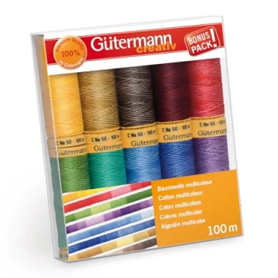 Gutermann 731149 1 Thread Set Natural Cotton 100m x 10 reels Multicolor, Multi Colour