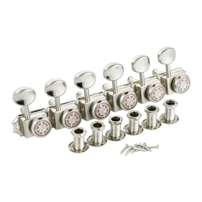 Guyker 6 in line Vintage Guitar Lock String Tuners Locking Tuning Key Pegs Machine Heads Replacement Parts for ST TL Style Electric Guitars nickel