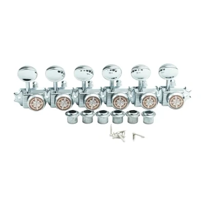 Package includes: 6 pieces (6 Right Hand) locking guitar tuners pegs, 7 mounting screws and 6 threaded bushing, good replacement compatible with LP, SG, TL Style electric, folk or acoustic guitars. Guitar sealed tuning machines with heavy duty internal gear, sturdy and convenient. Easy to install, easy to replace your old or dirty guitar tuning pegs. Guyker locking tuners help to provide finer tuning and greater stability. Oval shaped button with sealed housing. Chrome plated. Gear Ratio - 1:15, designed to fit modern 9mm headstock holes. Please check the parameter drawing in the attached pics before placing your order.
