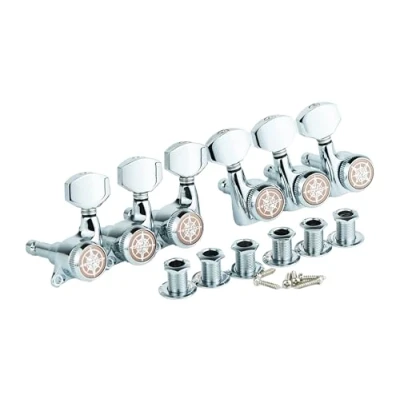 Package includes: 6 pieces (3 for Right, 3 for Left Hand) locking guitar tuners pegs, 6 mounting screws, 6 threaded bushings, and 6 ferrules, good replacement for almost electric, folk or acoustic guitars. Guitar sealed tuning machines with heavy duty internal gear, sturdy and convenient. Easy to install, easy to replace your old or dirty guitar tuning pegs. Guyker locking tuners help to provide finer tuning and greater stability. Hexagonal shaped button with sealed housing and 45 degree fixing tag. Gear Ratio - 1:18, designed to fit modern 10mm headstock holes. Chrome plated.