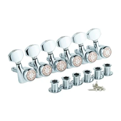 Package includes: 6 pieces (6 for Right Hand) locking guitar tuners pegs, 6 mounting screws, 6 threaded bushings, and 6 ferrules, good replacement for almost electric, folk or acoustic guitars. Guitar sealed tuning machines with heavy duty internal gear, sturdy and convenient. Easy to install, easy to replace your old or dirty guitar tuning pegs. Guyker locking tuners help to provide finer tuning and greater stability. Hexagonal shaped button with sealed housing and 45 degree fixing tag. Gear Ratio - 1:18, designed to fit modern 10mm headstock holes. Chrome plated.