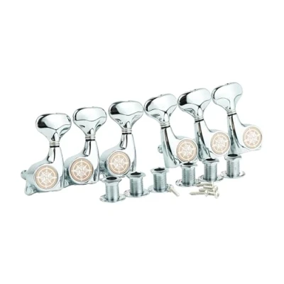 Package includes: 6 pieces (3 for Right, 3 for Left Hand) guitar tuners pegs, 6 mounting screws, 6 threaded bushing and 6 ferrules, good replacement for Strat Tele style electric or acoustic guitars. Guitar tuning machines with heavy duty internal gear, sturdy and convenient. Easy to install, easy to replace your old or dirty guitar tuning pegs. Guyker tuners help to provide finer tuning and greater stability. Gear Ratio - 1:21, designed to fit modern 10mm headstock holes.