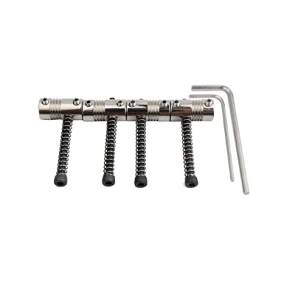 String pitch 19mm. Adjustable compensation brass bridge saddles for electric bass or other instruments. Made of copper material, durable and easy to install just unscrew. Each section is individually cast to be staggered, allowing for better string intonation while preserving the traditional appearance and feel. Package includes: Pack of 4 bass bridge saddles and one Allen wrench for height adjustment.