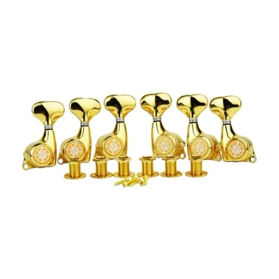 Package includes: 6 pieces (3 for Right, 3 for Left Handed) lock guitar tuners pegs, 6 mounting screws, 6 threaded bushings and 6 ferrules, good replacement for Strat Tele style electric or acoustic guitars. Guitar tuning machines with heavy duty internal gear, sturdy and convenient. Easy to install, easy to replace your old or dirty guitar tuning pegs. Guyker locking tuners help to provide finer tuning and greater stability. Comfortable and easy for adjustment of string tension. Gear Ratio - 1:21, designed to fit modern 10mm headstock holes. Semicircle shaped button with sealed housing and 45 degree fixing tag. Please check the parameter drawing in the attached pics before placing your order.