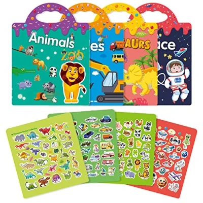 1. 4 different themes colorful sticker books: Children can learn a variety of dinosaurs, animals, vehicles, and planets, creatures, spaceships, etc. in space, and can make up different storylines, and put stickers on any position on the book as he likes. 2. Fun Learning Toys: Each sticker has a corresponding name for the pattern, which helps children's awareness of vehicles, space, dinosaurs and animals, develops your child's develops child's intellectual development, hands-on ability, imagination, creativity and color perception. 3.DIY Stickers Book Toys: No child can refuse cute stickers! Your kids can use their imaginations to DIY decorate vehicles, space worlds, dinosaur worlds and zoos. Children will love bringing scenes to life with colorful stickers. Enjoy interactive fun with the kids. 4.The clear sticker can be peeled off and reused over and over again. The stickers are made of PVC material, no glue, durable, waterproof and environmentally friendly. Not easy to stick fade and tear off. Kids can stick not only on sticker books, but also on smooth surfaces like windows, glass, mirrors, etc. 5.Ideal Gift for Kids: Books have a convenient handle, toddlers can take it when traveling, and can also take it to preschool, kindergarten. Keep children away from electronic screens and immerse themselves in joyful DIY games. Sticker book toys are ideal gifts for birthdays, Halloween, Thanksgiving and Christmas for boys and girls., Manufacturer: GUYUCOM