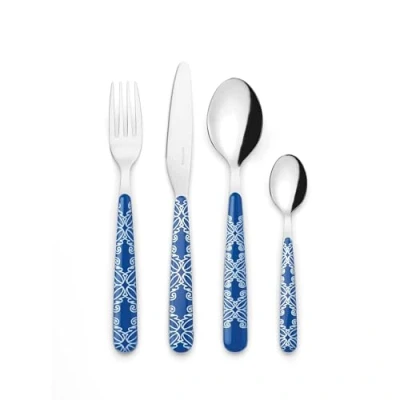 The steel cutlery with ''Fusion'' decorated plastic handle offers an original combination of colors and styles MATERIAL: Made of high quality stainless steel and an impact-resistant acrylic recyclable material with reasonable thermal resistance ERGONOMIC: Ergonomic colored plastic handle for an easy and safe grip 24 CUTLERY SET: The service for 6 people includes 6 forks, 6 teaspoons, 6 soup spoons and 6 table knives EASY TO CLEAN: Dishwasher safe