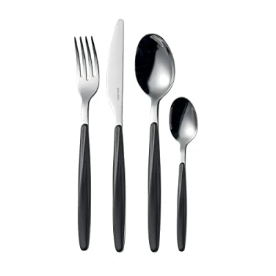 The elongated form also features in this new cutlery set Which differs from all the others in the catalogue in having solid-colour Non-transparent handles White 24 Piece Cutlery Set My Fusion